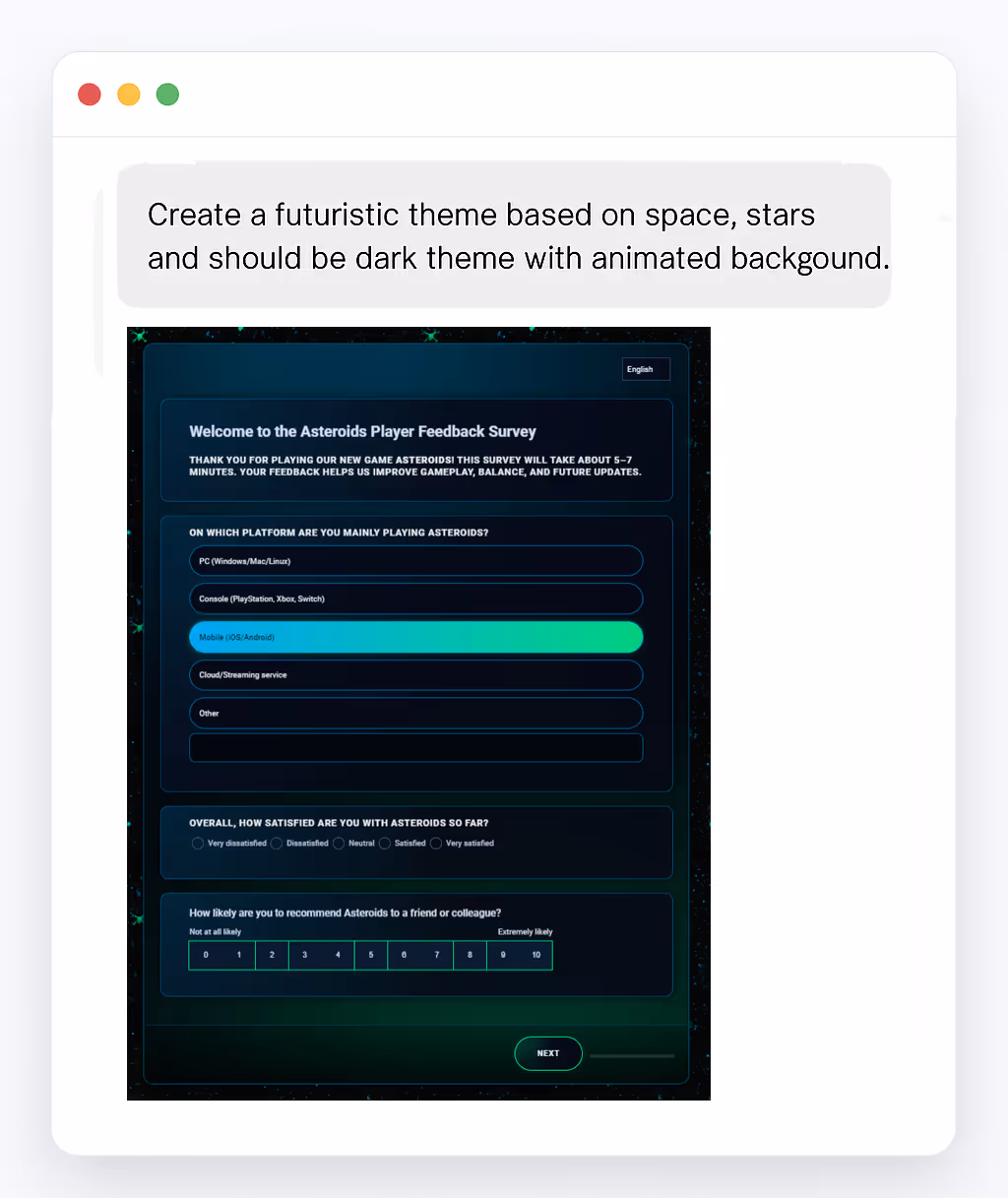 Artemis enables you to build surveys with sophisticated conditional logic, evaluate current surveys and offer recommendations for enhancing your design, and automatically create visually appealing themes.